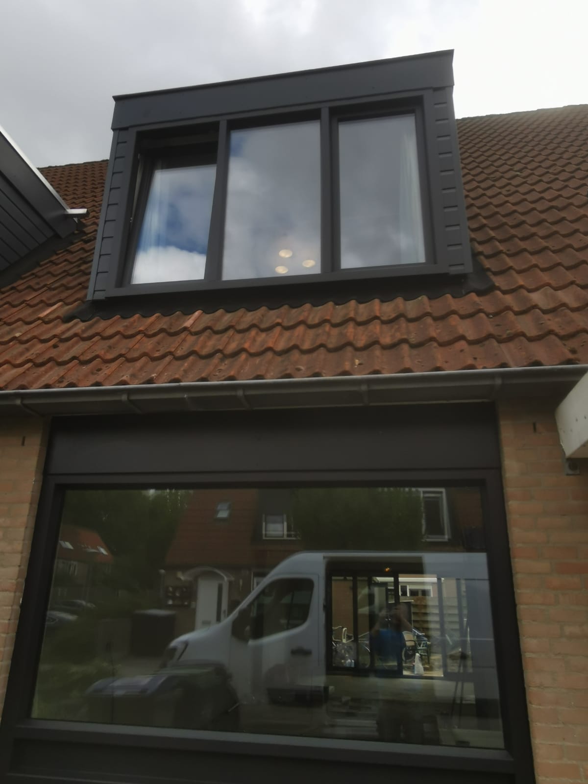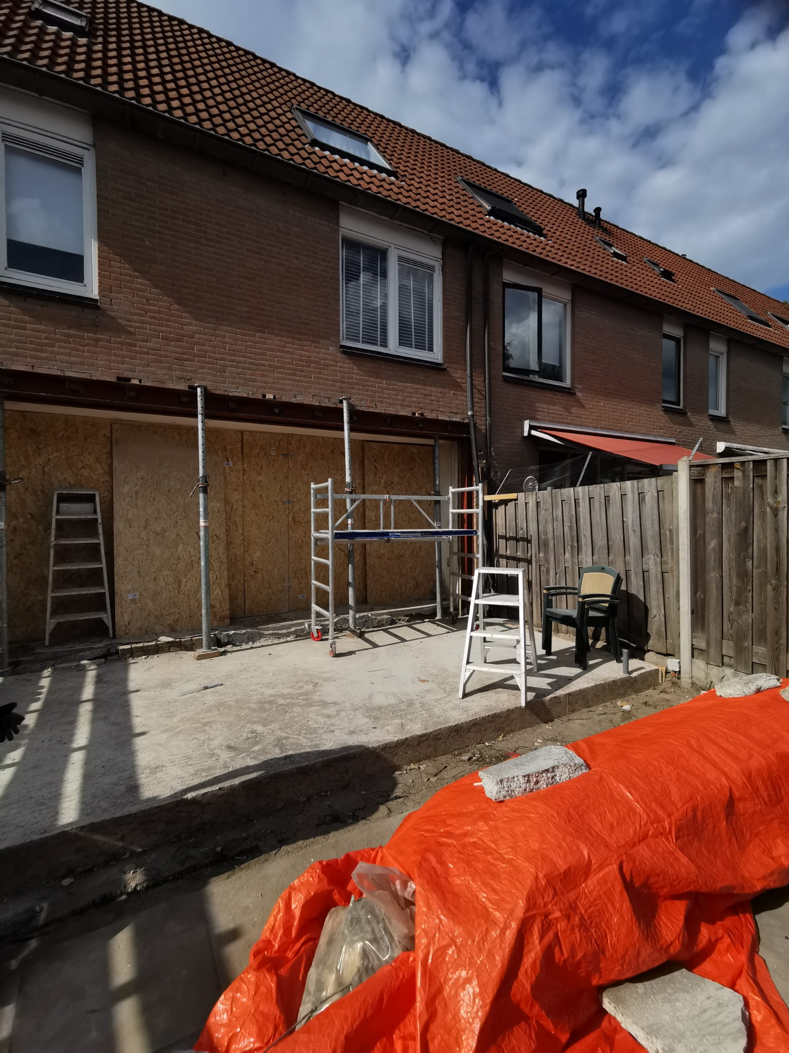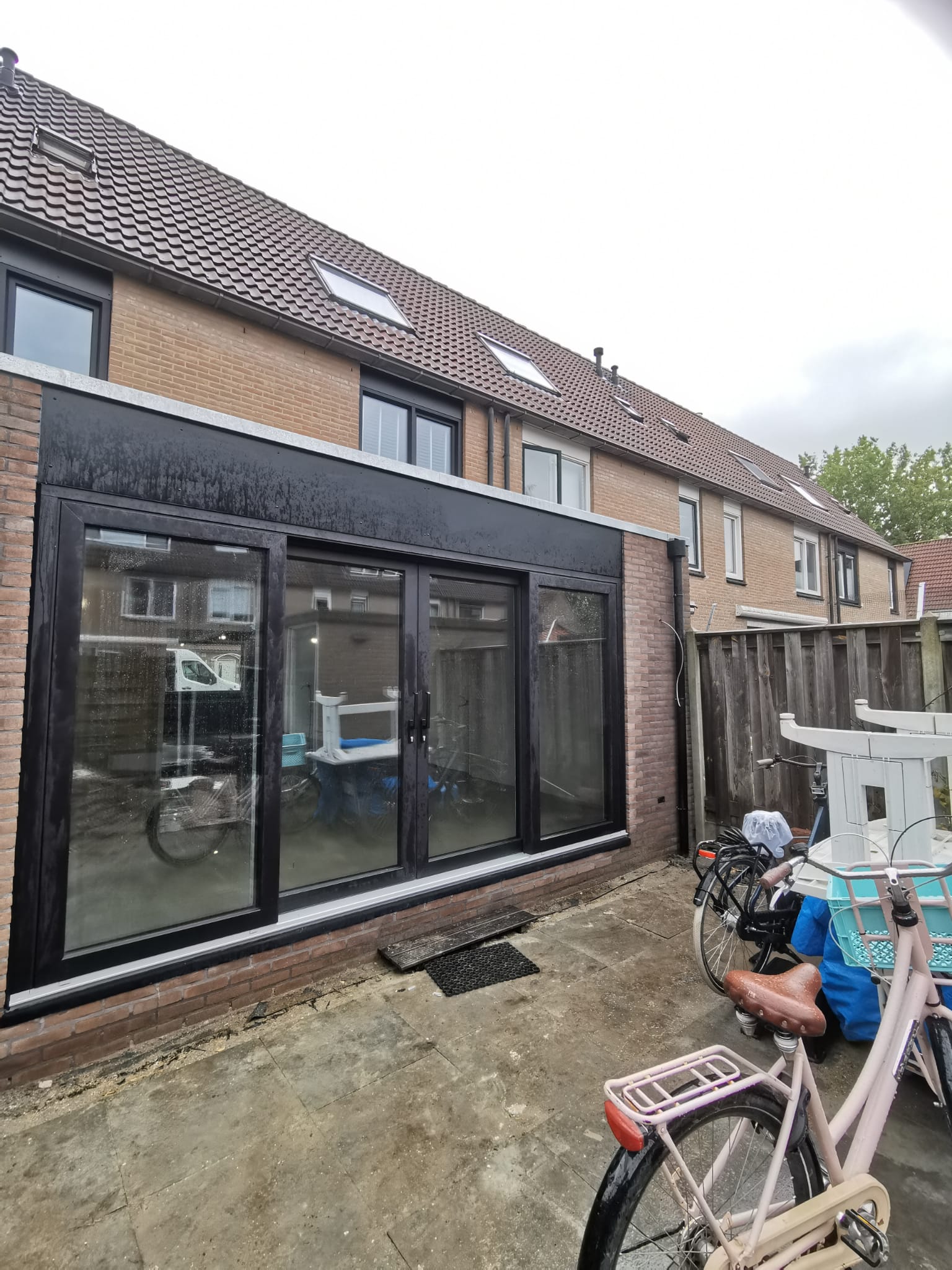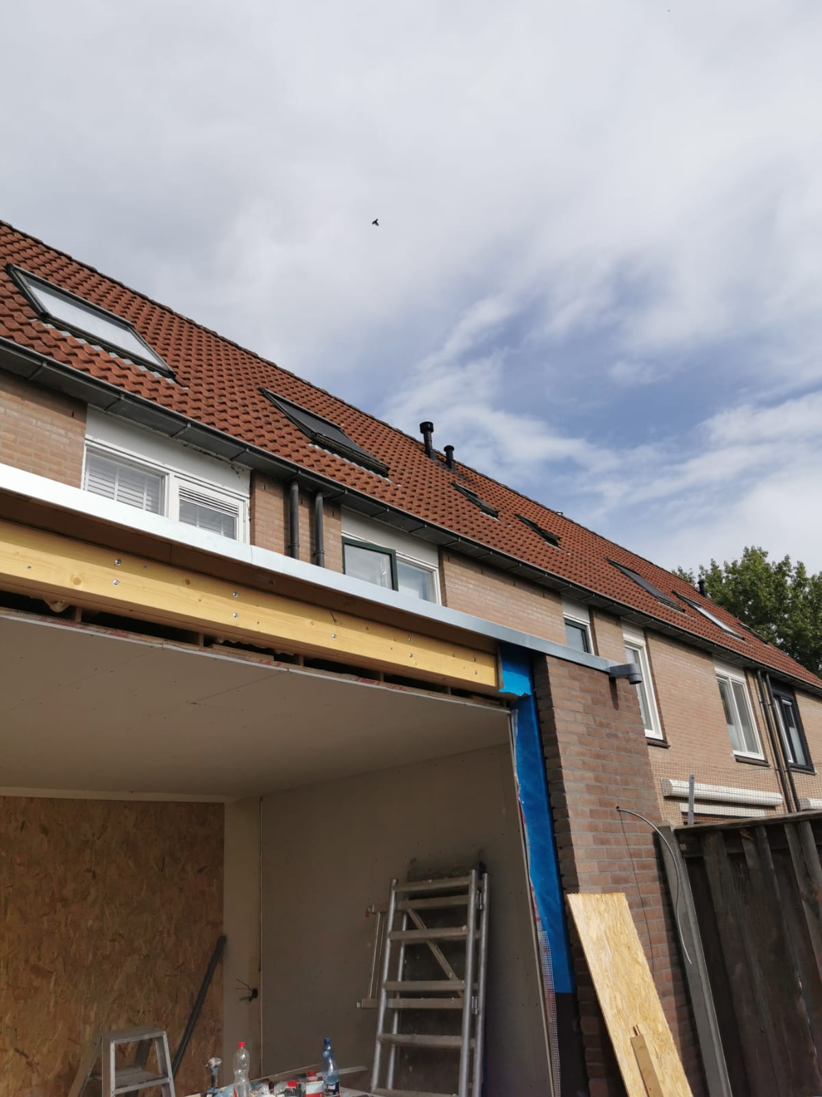 Bouw van een uitbouw aan een huis in Almere, inclusief dakkapellen, dakramen en ramen.