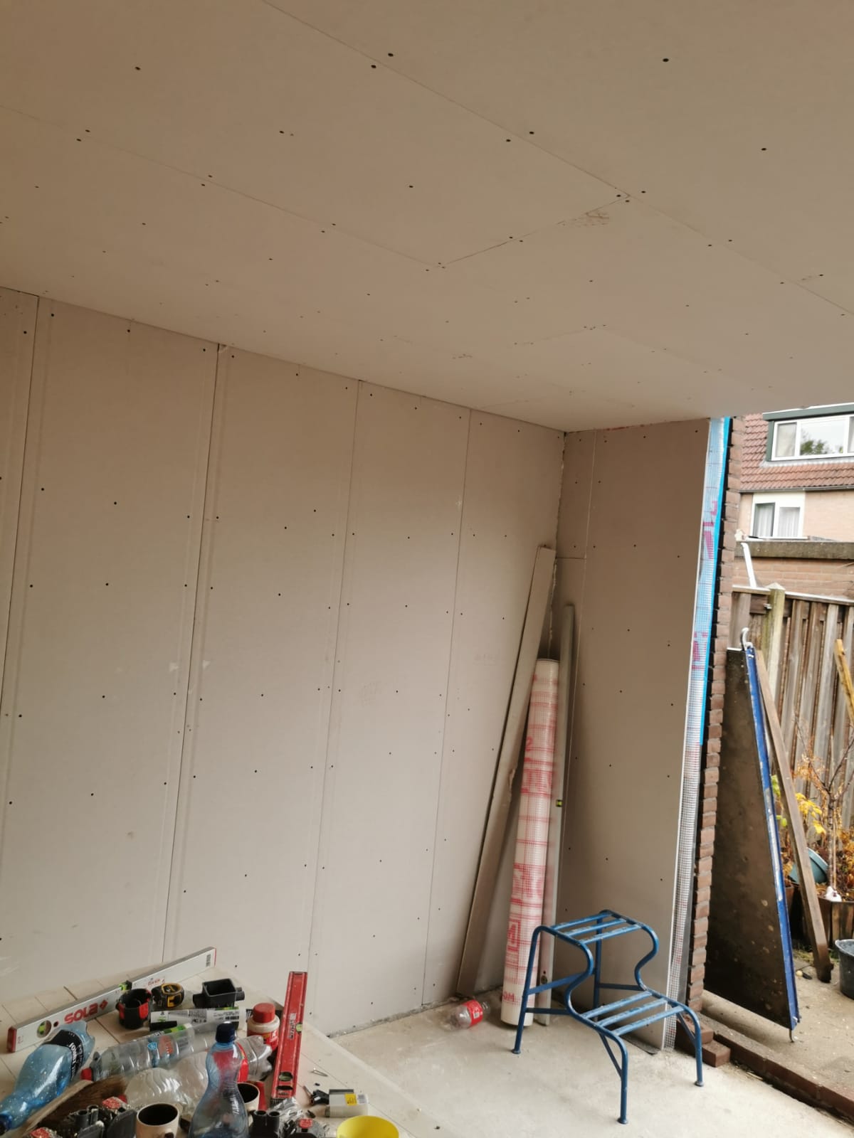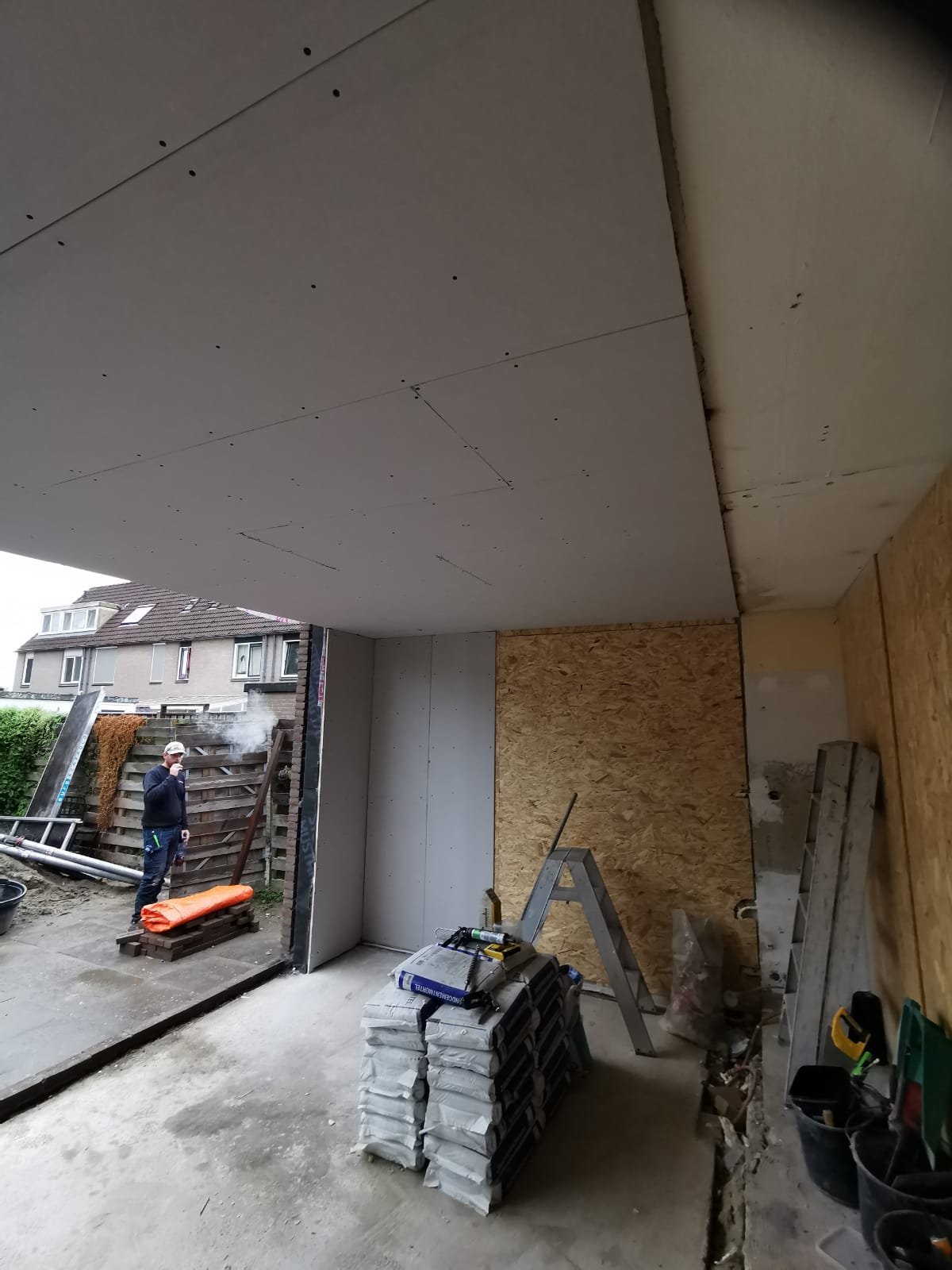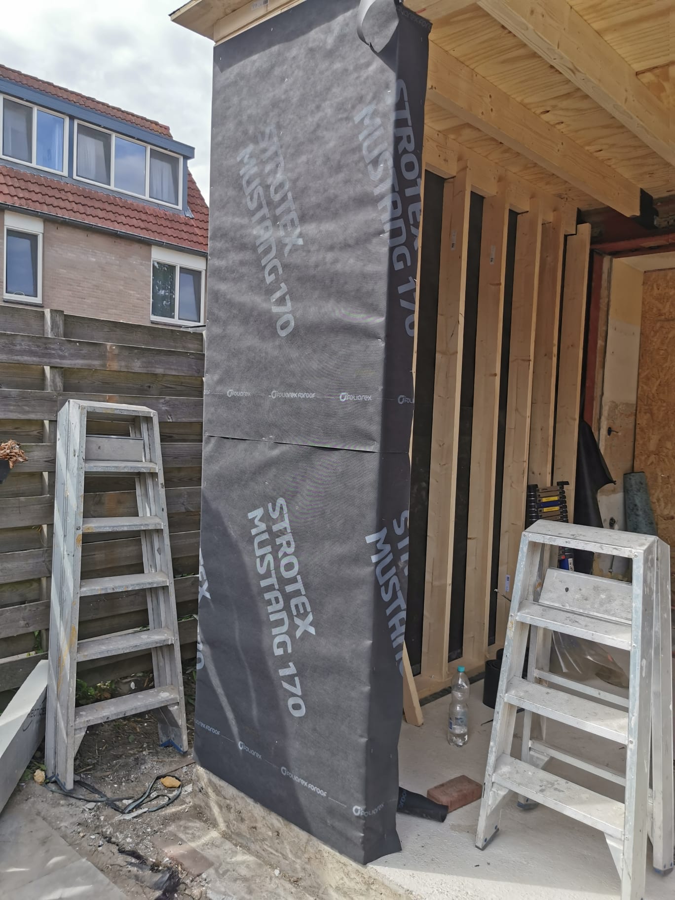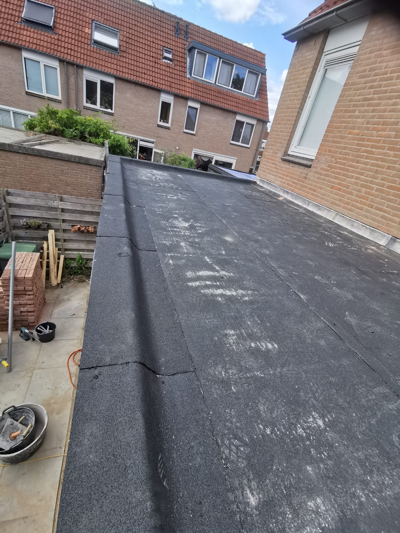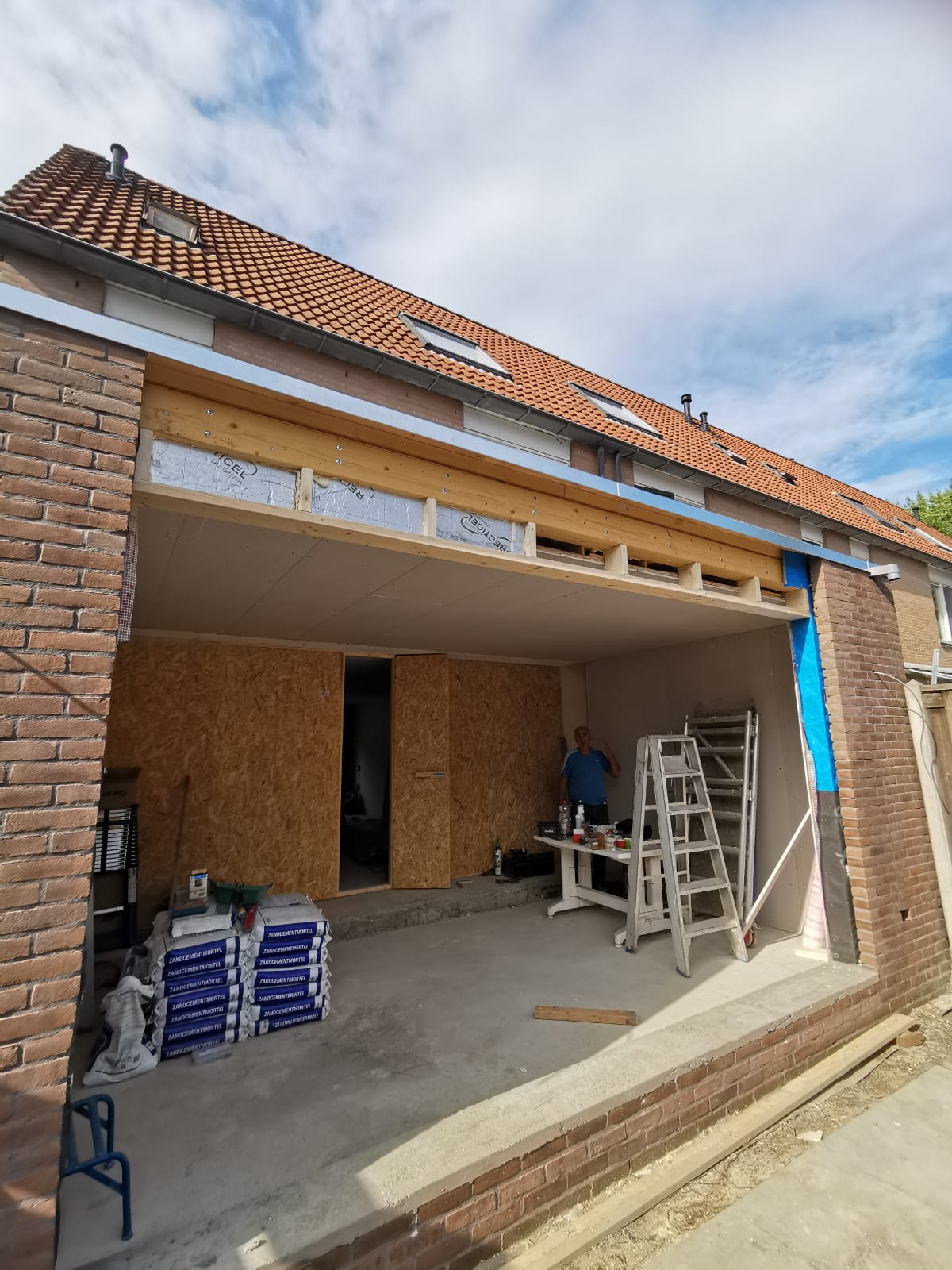 Bouw van een uitbouw aan een huis in Almere, inclusief dakkapellen, dakramen en ramen.